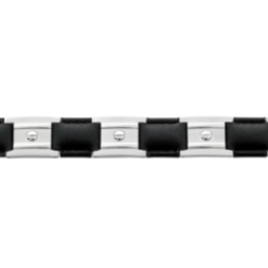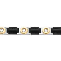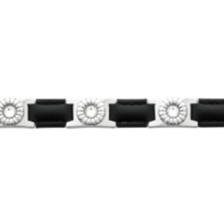 Sabona Black Leather Gem Stainless Magnetic Bracelet