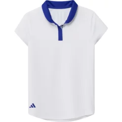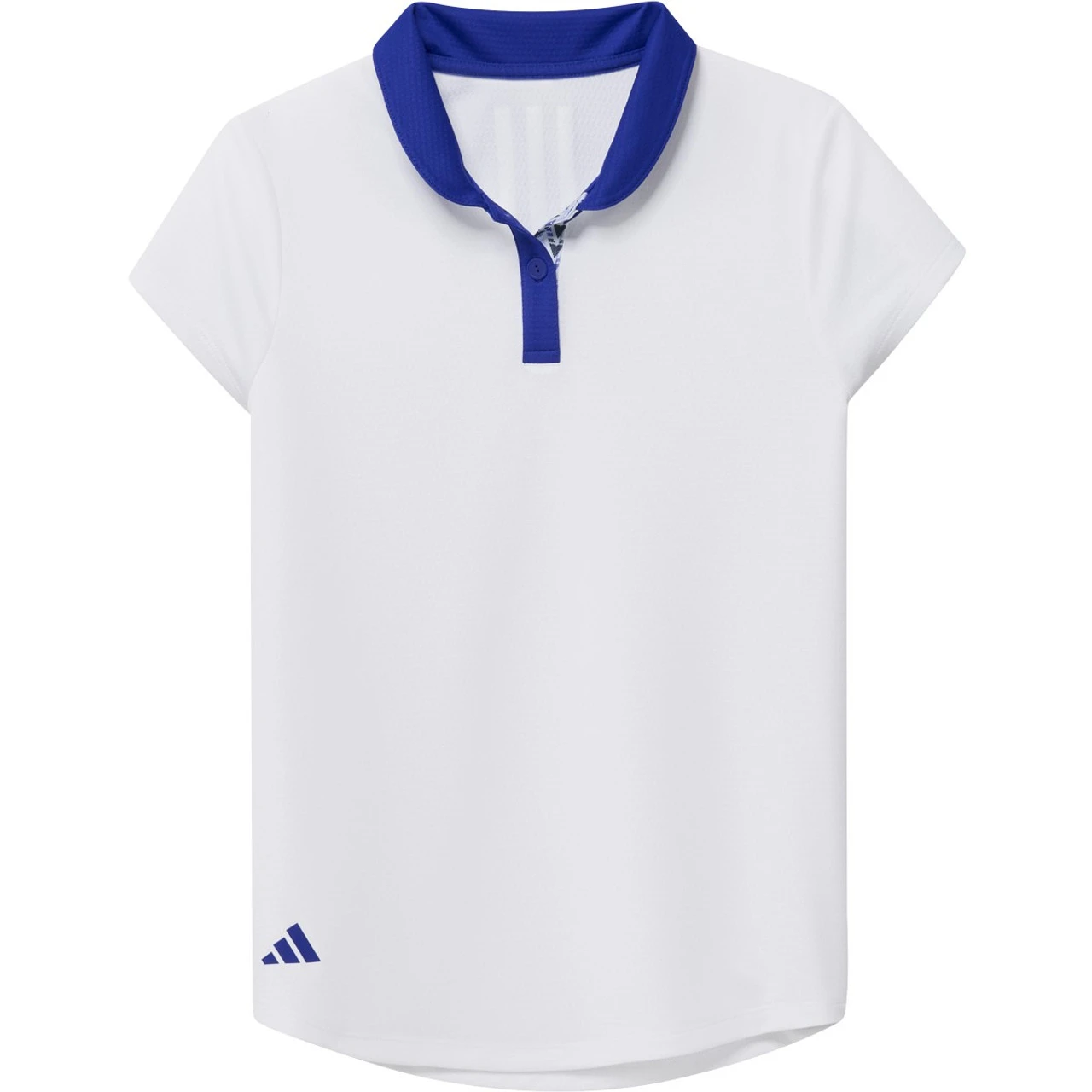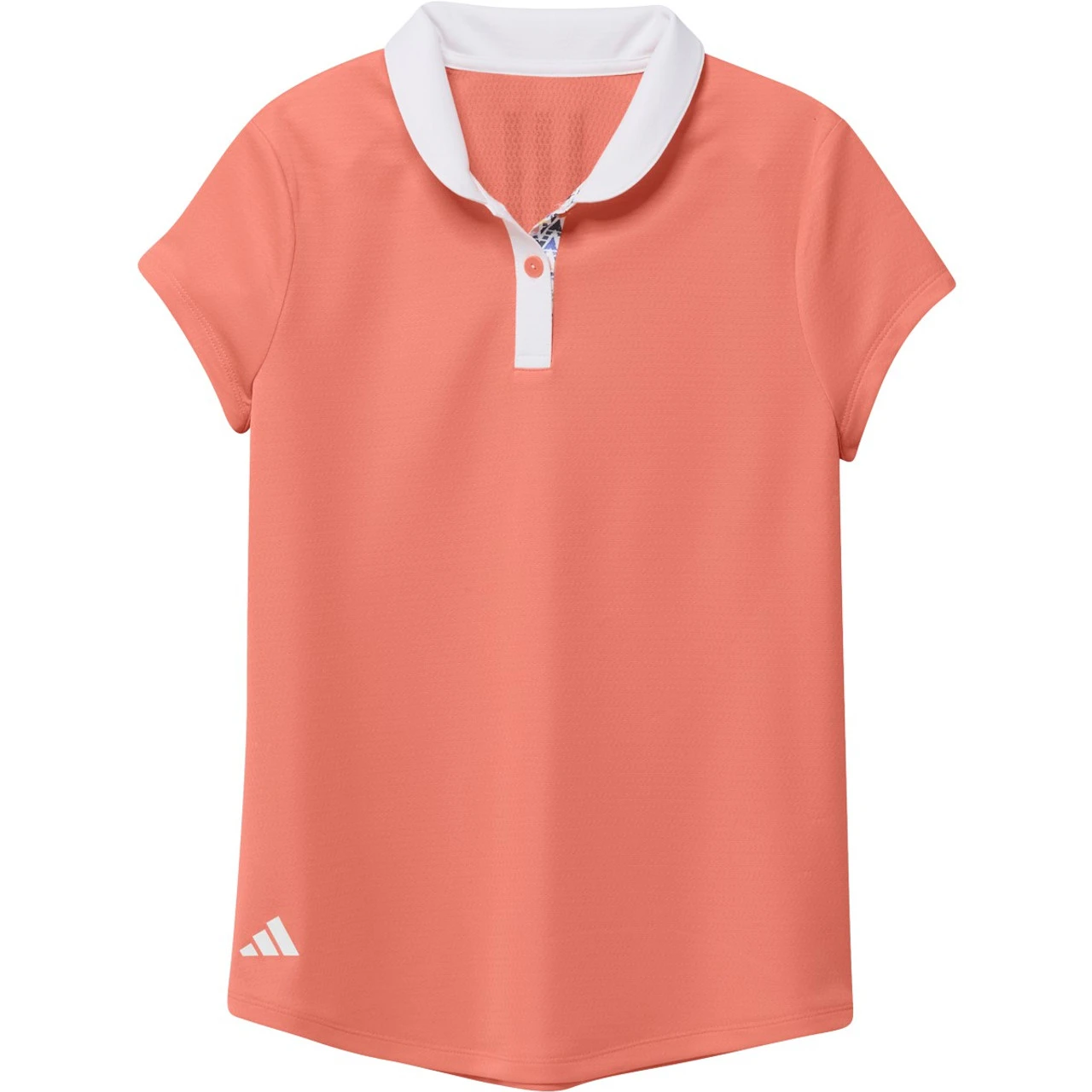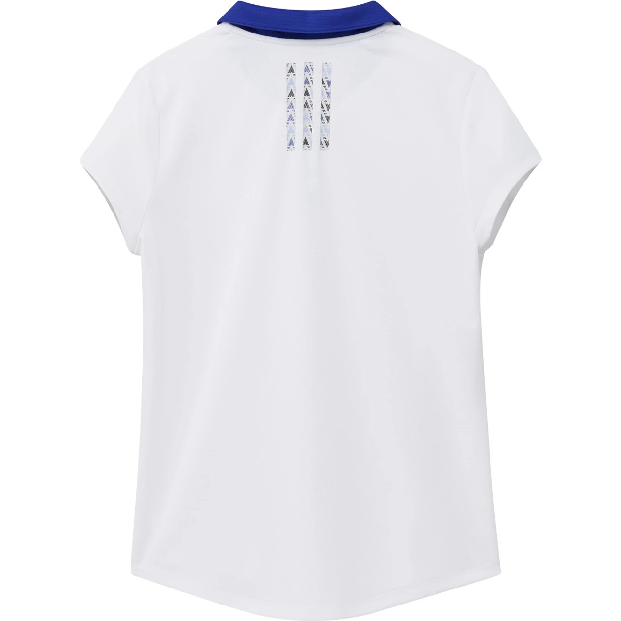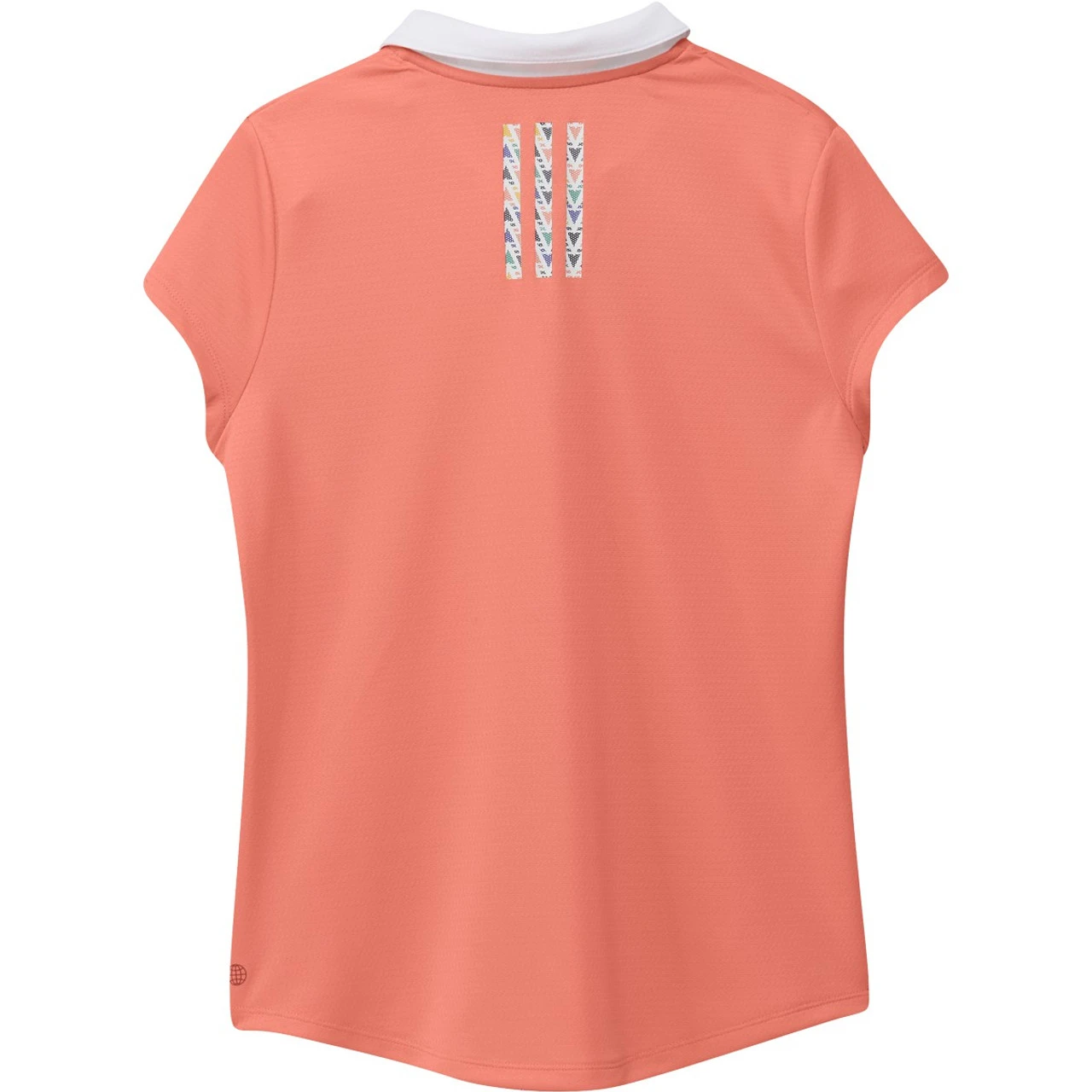 A lightweight polo for sunny days on the course. This junior girls’ adidas golf shirt keeps you cool when the temperature rises with built-in HEAT.RDY tech. The curved hem and low collar give it extra style points. Graphic 3-Stripes on the back root it in sport. Made with 100% recycled materials, this product represents just one of our solutions to help end plastic waste.