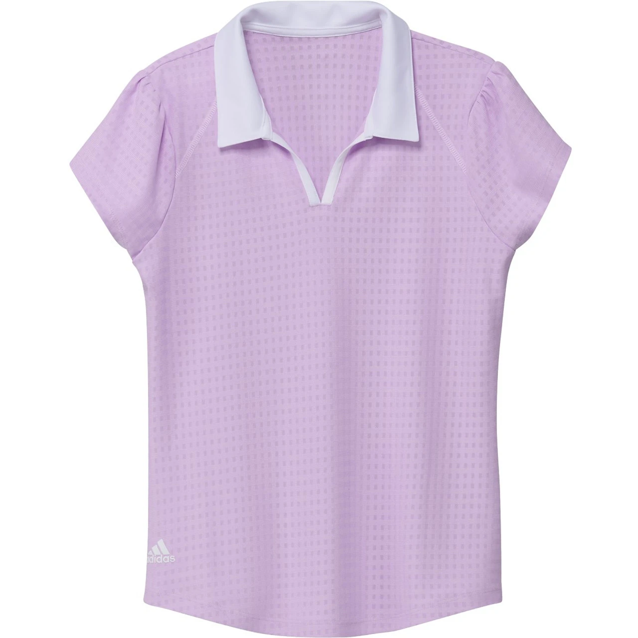 Tee off in feminine style in this junior girls’ adidas golf polo shirt. It’s made of soft fabric to keep you comfortable through your round. Cap sleeves and a curved hem keep your look on point as you shoot low. Made in part with recycled content generated from production waste, e.g. cutting scraps, and post-consumer household waste to avoid the larger environmental impact of producing virgin content. Contains a minimum of 25% recycled content.