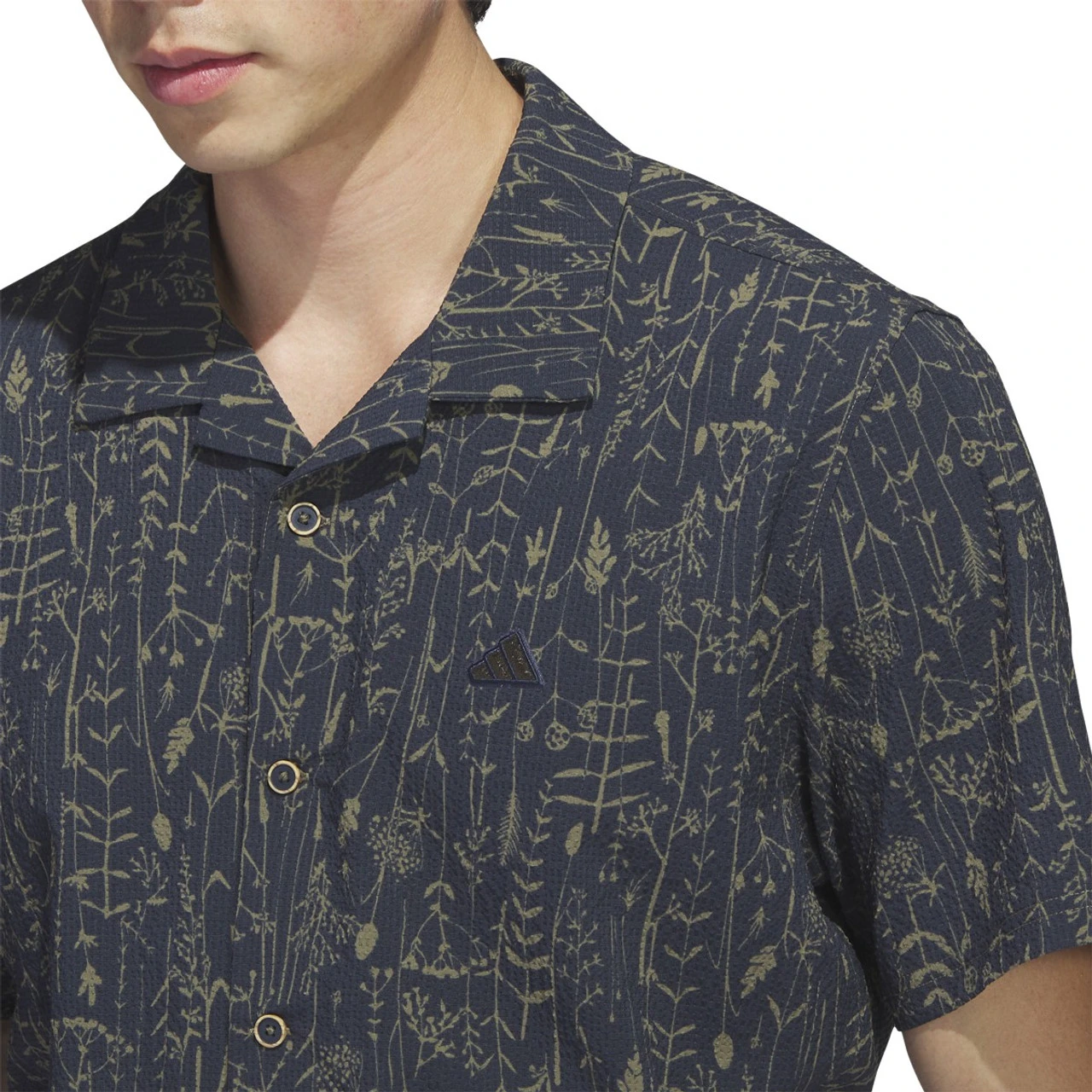 Level up your course look in this men’s adidas golf button-up shirt. The seersucker fabric has a soft feel, with plenty of stretch for full mobility. Made with a series of recycled materials, and at least 70% recycled content, this product represents just one of our solutions to help end plastic waste.
