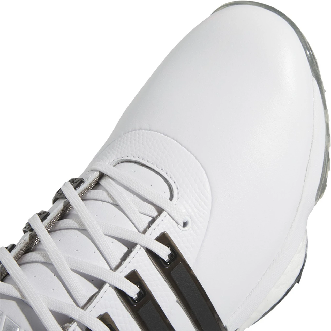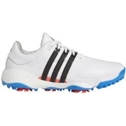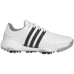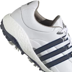 These men’s adidas golf shoes are made for endurance, performance and stability on the course. The DUALSTACK hybrid midsole featuring Boost is super comfortable while also delivering stability and performance. Direct-inject TPU spikes provide traction without tiring spike pressure. The Geofit collar and new FYW last wrap your feet for continual support. This shoe is made with high-performance recycled materials and features an upper made with 50% recycled content.