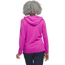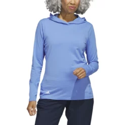 This women’s adidas golf hoodie is a perfect layer for cool-weather rounds. The brushed fabric has a super-soft feel, and built-in stretch ensures a full range of motion. A curved hem finishes the look. Made with a series of recycled materials, and at least 70% recycled content, this product represents just one of our solutions to help end plastic waste.