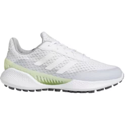 Stay cool during the heat of the day in these women’s-specific adidas spikeless golf shoes. The mesh upper and ventilated chassis pull warm air out and keep your feet aerated. The Bounce midsole provides cushioning for comfort and flexibility. This shoe is made with high-performance recycled materials and features an upper made with 50% recycled content.Â