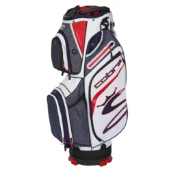 The Cobra Ultralight Cart Bag features a cart strap PASS-THROUGH allowing access to every pocket while keeping the bag secure on cart. Designed with maximum storage including a large insulated cooler pocket which holds 12 ounce cans and dual fleece lined valuables pockets.Â