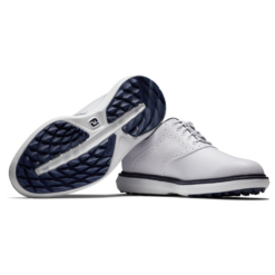 The FootJoy FJ Traditions Spikeless Golf Shoes offer complete traction and can be easily maintained round after round. Lightweight comfort and super-cushioned foam deliver an incredibly flexible and comfortable ride. FJ, The #1 Shoe in Golf. Â