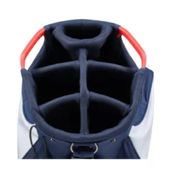 Mizuno LW-C Cart Bag is a brand new concept for Mizuno. The LW-C is here to break the reputation of cart bags as being bulky, heavy, and cluttered.  Large pockets for apparel or bigger items, a cooler pocket for your hydration of choice, and a 7-way top cuff are just a few features that this lightweight cart bag still has, but in a smaller, more efficient design than your normal, bulky cart bag..Â