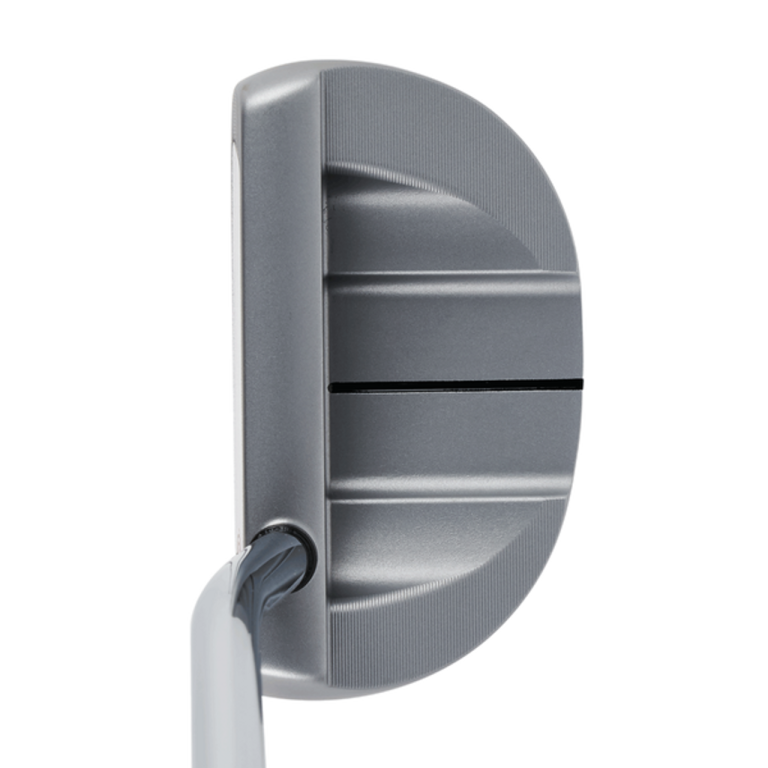 The Odyssey White Hot OG #5 Putter is a face-balanced mallet with a single bend shaft, best suited for strokes with minimal arc and face rotation. This putter features our legendary White Hot insert, available in both stepless steel and our new red Stroke Lab shaft, each fitted with our gray DFX grip.