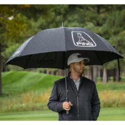 New for 2022!!! You know how it goes: the one time you forget your umbrella, 100% chance it rains. So keep this 62” PING Single Canopy Umbrella with your bag, and maybe you won’t need it. Fabric is waterproof (goes without saying), has a simple-release deployment element, a Mr. PING tag design, and comfortable foam handle.