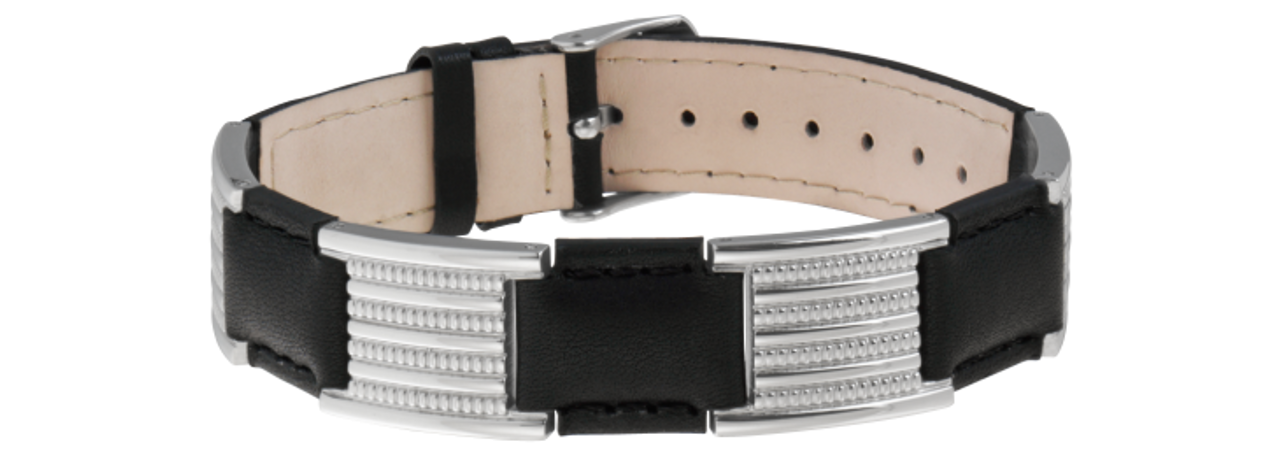 Sabona Black Leather Dress Stainless Magnetic Bracelet features: