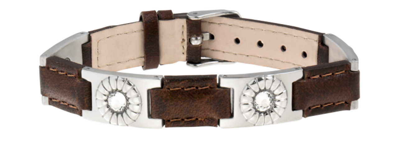Sabona Brown Leather Gem Stainless Magnetic Bracelet features: